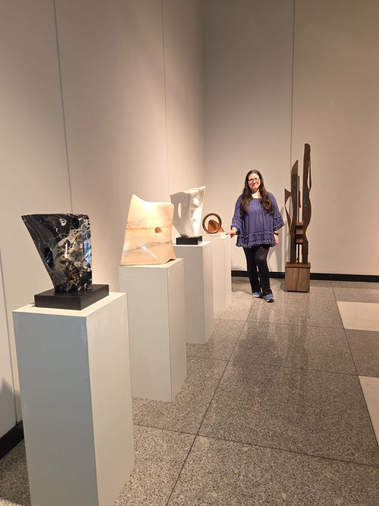 Históricamente, la mujer ha sido el eje de una versatilidad moldeada por el entorno y elegida por la voluntad. Esta muestra celebra esa capacidad de habitar diferentes estados: la resistencia y la resiliencia se manifiestan en el hierro y el cobre, reflejando una fortaleza estructural capaz de sostener aun a través de los óxidos, transformando el paso del tiempo en una pátina de experiencia. La pureza y el contraste de los mármoles blanco y negro representan la dualidad del pensamiento y la emoción, espejos de un equilibrio universal entre la luz y la sombra. Por su parte, la calidez de la empatía halla su voz en el mármol rosado; la suavidad de su tono en un material tan eterno como la piedra simboliza esa ternura que, al igual que en la botánica, persiste y florece incluso en las estructuras más sólidas.
